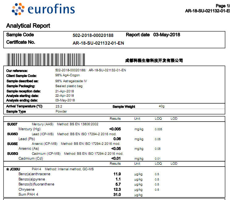 Tensión anti del activador del Telomerase del Pb 0.5ppm Astragaloside IV inflamatoria 1Tensión anti del activador del Telomerase del Pb 0.5ppm Astragaloside IV inflamatoria 2